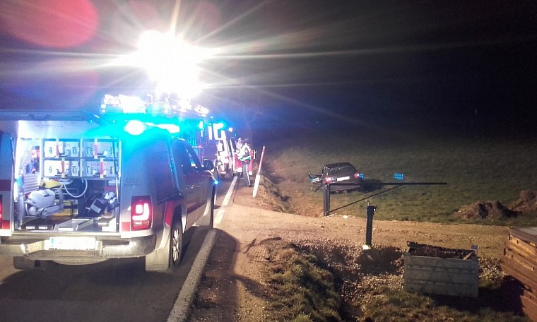 Der Unfall ereignete sich auf der L503, kurz nach der Ortsausfahrt Mettmach, nähe "Mairingerkeller". Das Unfallfahrzeug war aus Aspach kommend unterwegs, streifte einige Bäume auf der linken Fahrbahnseite und wurde in eine angrenzende Wiese geschleudert. Der Lenker des Fahrzeuges konnte ohne zuhilfenahme des Hydraulischen Rettungsgerätes aus seinem Fahrzeug gerettet werden. Er wurde unbestimmten Grades verletzt und vom anwesenden Team des Roten Kreuzes Erstversorgt. Da anfangs unklar war ob weitere Personen in dem Wagen waren wurde das nähere Gebiet um die Unfallstelle mit Wärmebildkamera und Scheinwerfern abgesucht, es wurden jedoch keine weiteren Personen gefunden. Nach dem aufräumen der Unfallstelle konnten wir um 06:30 wieder ins Feuerwehrhaus einrücken.