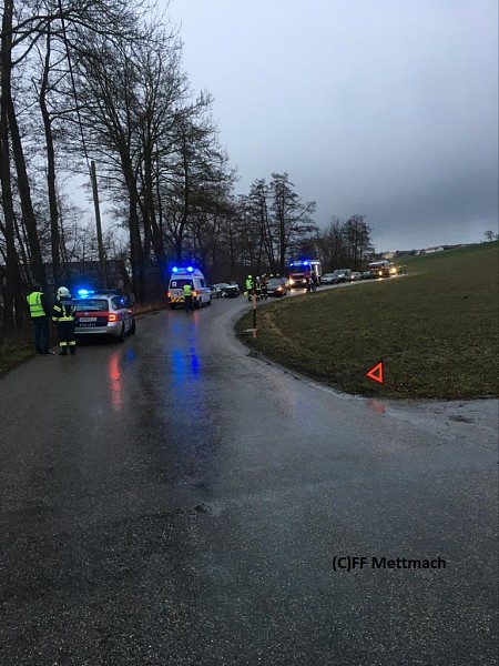 Ursprünglich wurden unsere Nachbarfeuerwehren Wildenau und Aspach zu diesem Einsatz alarmiert, da der Einsatzort aufgrund von (vermutlich) unklaren Ortsangaben in Wildenau angenommen wurde. Da sich der Einsatzort allerdings im Gemeindegebiet von Mettmach befand wurde unsere Feuerwehr unverzüglich nachalarmiert.