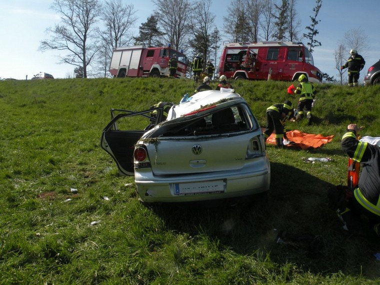 Beim Eintreffen am Einsatzort wurden 2 verunfallte Fahrzeuge vorgefunden, wobei sich ein PKW aufgrund der Kollision mehrmals überschlagen haben dürfte und in etwa 60m Entfernung in der Angrenzenden Wiese zu stehen kam. Nach einer Abstimmung mit dem Notarztteam wurden die Hydr. Rettungsgeräte aufgebaut und das Fahrzeug gesichert. Die beiden Fahrzeuginsassen wurden anschließend in Kooperation mit dem Roten Kreuz und den Kameraden der FF Lohnsburg aus dem Fahrzeug gerettet.