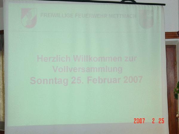 Am 25. Februar 2007 wurde die Vollverammlung 2007 der FF-Mettmach im Gasthaus Bogner abgehalten.