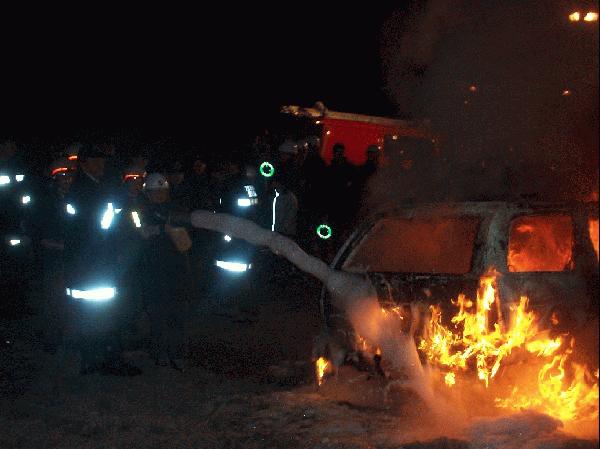 Entgegen den Erwartungen war nach der Filmvorstellung noch nicht Schlafenszeit sondern nun war es - knapp vor Mitternacht - Zeit für das spektakuläre Highlight des Tages. Es wurde ein Fahrzeug in Brand gesteckt, dass unter den leuchtenden Augen der FF-Jugend mittels Schaumeinsatz gelöscht wurde. Anschließend war es nun endgültig Zeit um ins Bett bzw. in den Schlafsack zu kriechen.