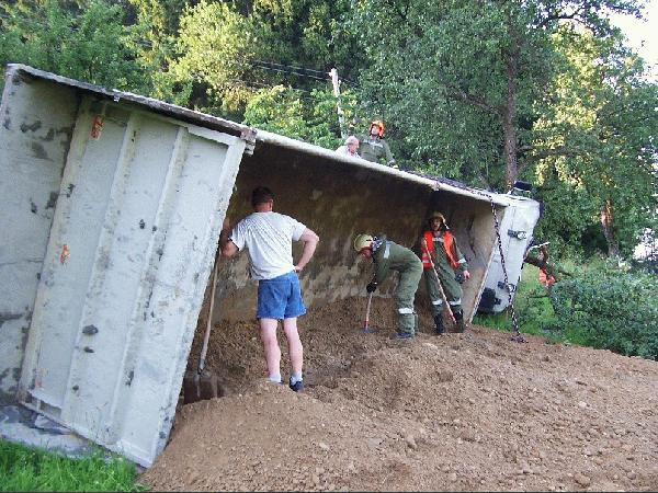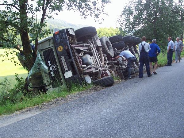 Am Montag, dem 27. Juni 2005 wurde die FF Mettmach zu einem Lkw-Unfall in Kleinschnaidt (Richtung Whisky Mühle) herbeigerufen. 12 Mann rückten mit allen Fahrzeugen (TLF 2000, LFBA, KDO) der FF um 17:55 Uhr aus.An der Unfallstelle angekommen, fand man einen mit Schotter vollbeladenen Sattelschlepper vor, der über die Straßenböschung hinabgestürzt war. Der Fahrer des Fahrzeuges wurde dem Roten Kreuz zur Intensivbetreuung und anschließendem Weitertransport ins Krankenhaus Ried i.I. übergeben. Er wurde unbestimmten Grades verletzt.Die Bergung des LKW`s gestaltete sich als schwierig und erforderte eine Straßensperre zwischen Kleinweiffendorf und Grubmühl. Durch die Unterstützung von Kranfahrzeugen der FF Ried und der Firma Katzlberger konnte schließlich gemeinsam die Bergung vorgenommen werden. Einsatzende war um 21:30 Uhr.