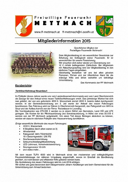 Information an die Mitglieder