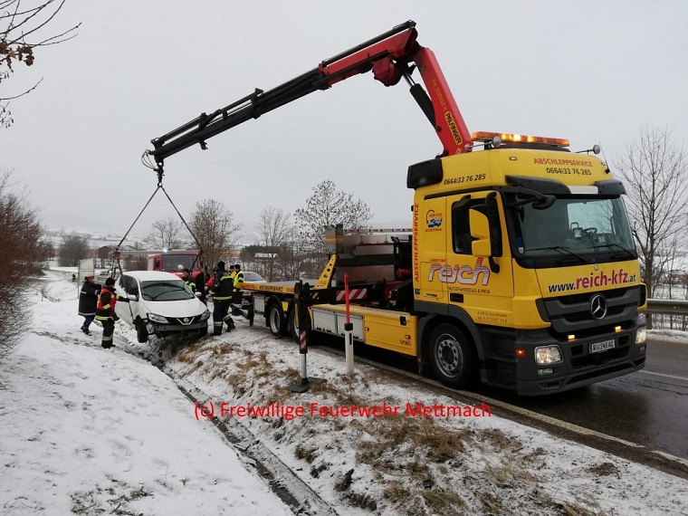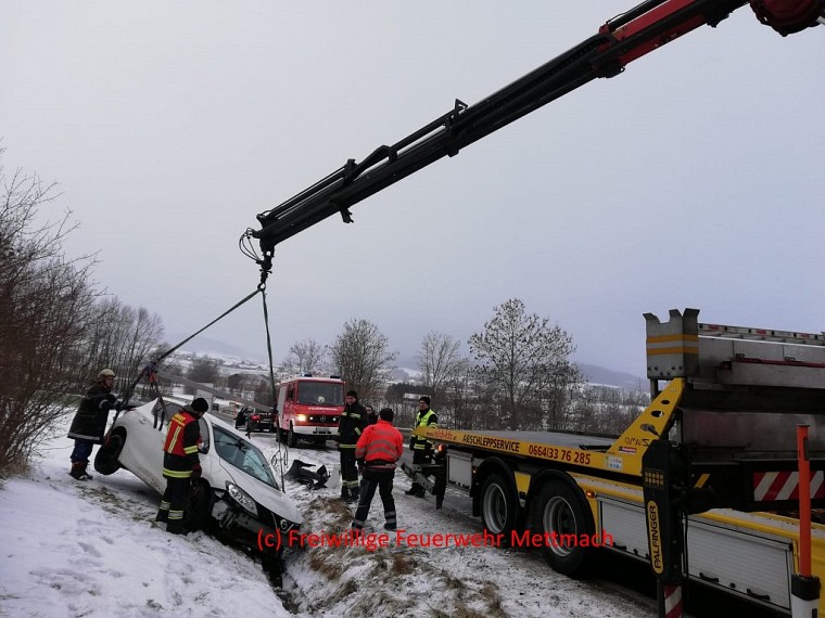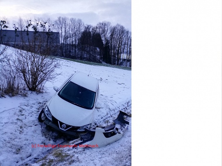Beim Eintreffen am Einsatzort wurde ein verunfallter Pkw vorgefunden welcher vermutlich aufgrund der Winterlichen Fahrverhältnisse von der Fahrbahn abgekommen war.