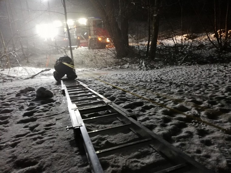 Ein nicht unbedingt alltägliches Szenario, bei dem wir mit den unserer Feuerwehr zur Verfügung stehenden Gerätschaften versuchten eine möglichst sichere und schnelle Rettung zu ermöglichen.