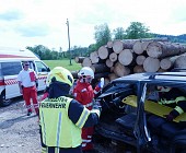 Insgesamt mussten 3 verletzte Personen gerettet werden, wobei 2 davon mittels Hydr. Rettungsgerät befreit werden mussten. Der Beifahrer stellte sich dabei als besondere Herausforderung dar, weil er mit einer Pfählungsverletzung präpariert war. Nach Abwägung der Möglichkeiten und der vorhandenen techn. Geräte entschied man sich dazu, das Rundholz welches den Bauch des Opfers getroffen hatte, mit einer Handsäge zu durchtrennen.