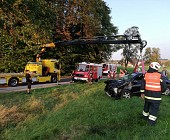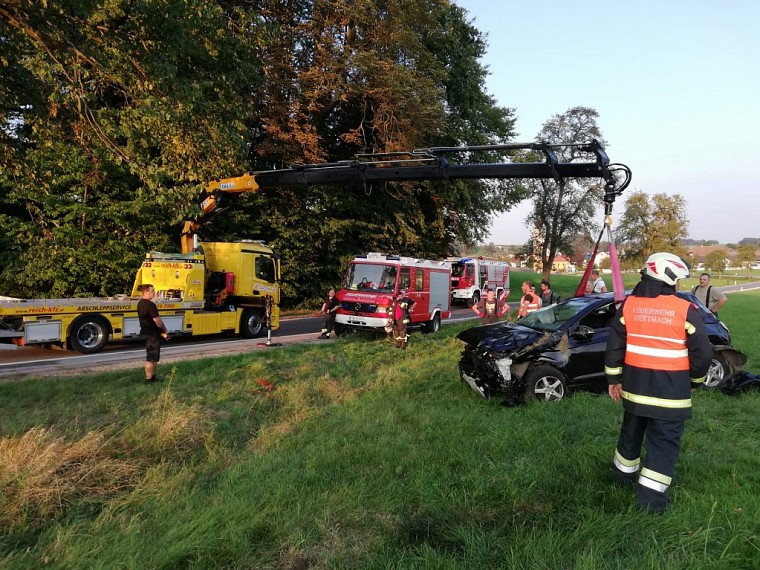 Ein PKW kam aus unbekannter Ursache von der Fahrbahn ab und prallte gegen einen Baum. Anschließend dürfte sich das Fahrzeug noch einige male Überschlagen haben bis es in der angrenzenden Wiese zum Stillstand kam. Die beiden Fahrzeuginsassen wurden dabei unbestimmten Grades verletzt. Wir unterstützten den Rettungsdienst bei der Patientenversorgung und richteten eine Totalsperre der Straße ein. Anschließend halfen wir noch dem Abschleppunternehmen bei der Bergung des Unfallfahrzeuges räumten die Unfallstelle auf.
