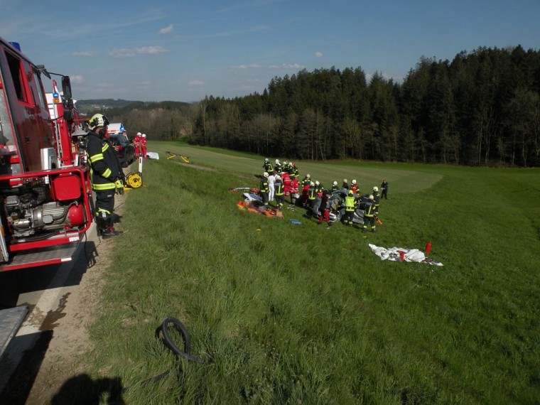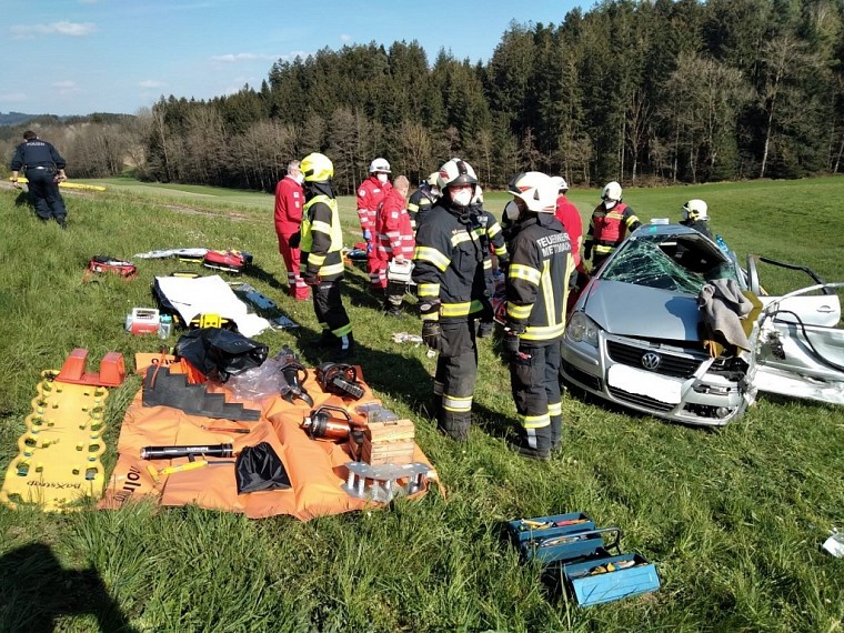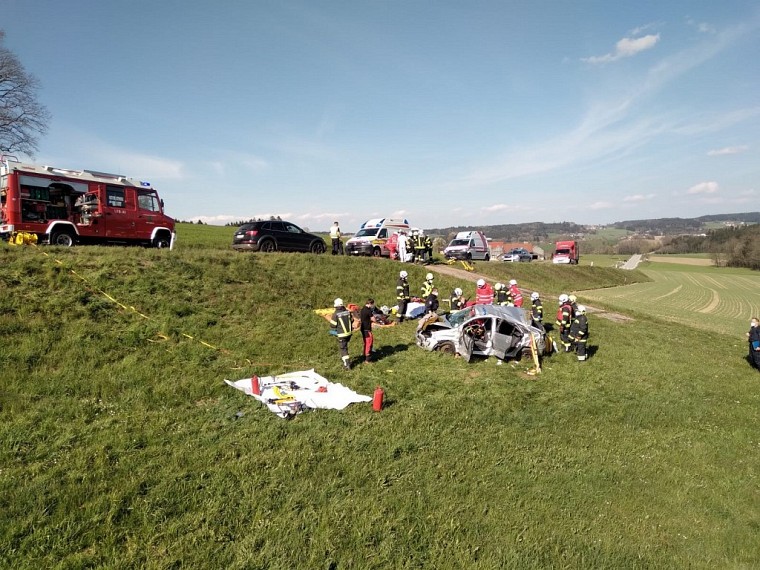 Beim Eintreffen am Einsatzort wurden 2 verunfallte Fahrzeuge vorgefunden, wobei sich ein PKW aufgrund der Kollision mehrmals überschlagen haben dürfte und in etwa 60m Entfernung in der Angrenzenden Wiese zu stehen kam. Nach einer Abstimmung mit dem Notarztteam wurden die Hydr. Rettungsgeräte aufgebaut und das Fahrzeug gesichert. Die beiden Fahrzeuginsassen wurden anschließend in Kooperation mit dem Roten Kreuz und den Kameraden der FF Lohnsburg aus dem Fahrzeug gerettet.