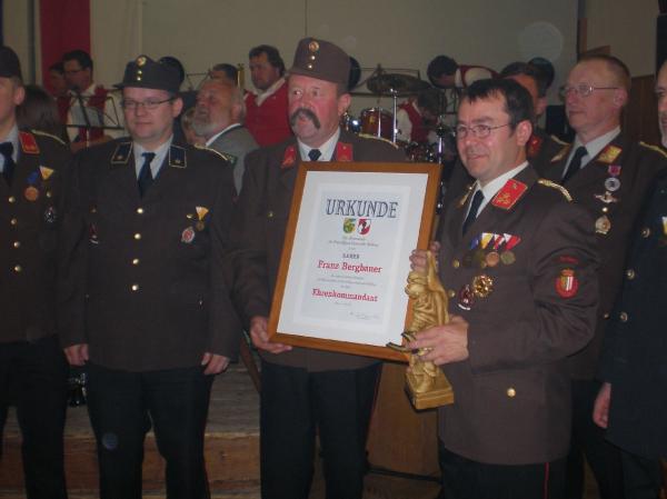 Brandrat Ferdl Knauseder wurde von der FF Osterhofen das "Ehrenzeichen der Kreisbrandinspektion Deggendorf in Bronze" überreicht. Weiters wurden die langjährigen Dienste des Ehrenkommandanten der FF Arnberg Franz Bergbauer gewürdigt.